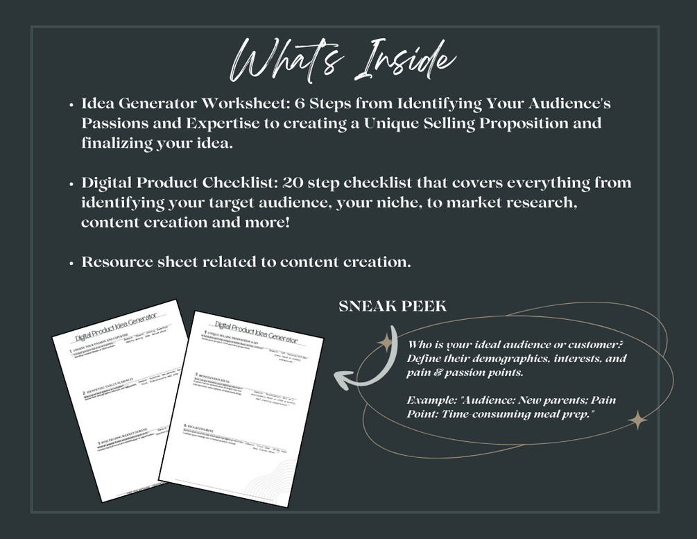 Inside, you’ll find a detailed, actionable system that covers every stage of digital product creation from discovering your niche to scaling your business.